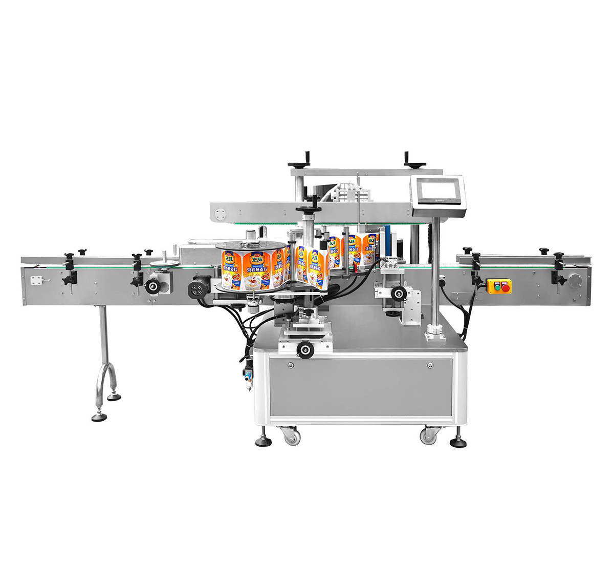 采用標(biāo)準(zhǔn)PLC+觸摸屏+標(biāo)準(zhǔn)傳感器電控系統(tǒng)控制,使用方便,維護簡單;具備無物不貼標(biāo),無標(biāo)自動校正和自動檢測功能;人機交互界面中英文注釋和完善的故障提示功能、操作教導(dǎo)功能,故障排除說明;還可選配打碼和噴碼功能