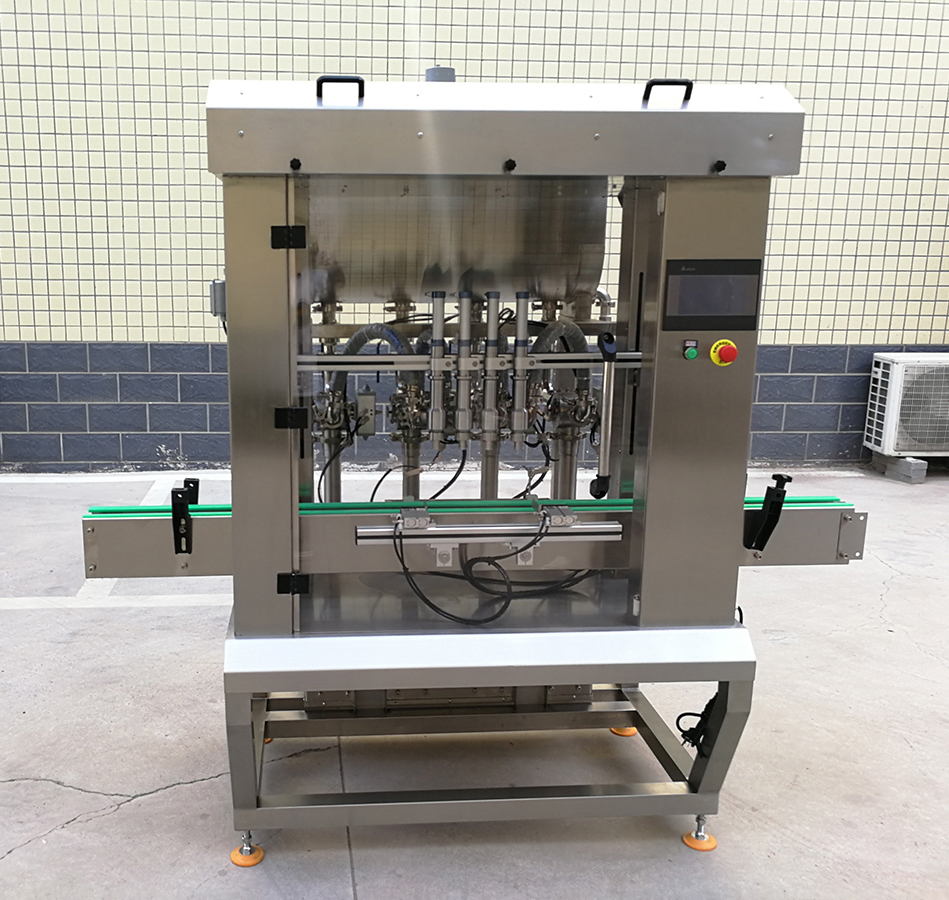 是我司新款的4頭醬料灌裝機(jī),設(shè)計(jì)新穎、外形美觀,具有界面友好,適應(yīng)性強(qiáng)、操作簡(jiǎn)單、灌裝量準(zhǔn)確,維護(hù)方便等特點(diǎn)。設(shè)備表面和物料按觸面均采用304不銹鋼材料制造,無滴漏,無拉絲,易清洗,完全符合食品行業(yè)標(biāo)準(zhǔn)要求。