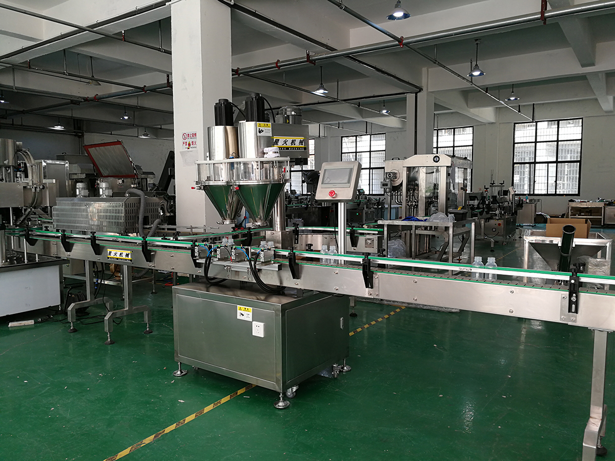 是針對(duì)瓶/罐裝的粉末物料充填灌裝而研制,如:豆奶粉、蛋白粉、豆?jié){粉、米粉、咖啡粉、蘇打粉、藕粉、核桃粉、膨松劑、泡打粉、酶制劑等。瓶裝粉劑灌裝生產(chǎn)線由理瓶機(jī)、粉劑灌裝機(jī)、理蓋旋蓋機(jī)、鋁箔封口機(jī)等設(shè)備組成,能完成粉劑物料的喂罐、托罐、充填計(jì)量、上蓋旋蓋、鋁箔封口、自動(dòng)噴碼、紙箱包裝等工作。