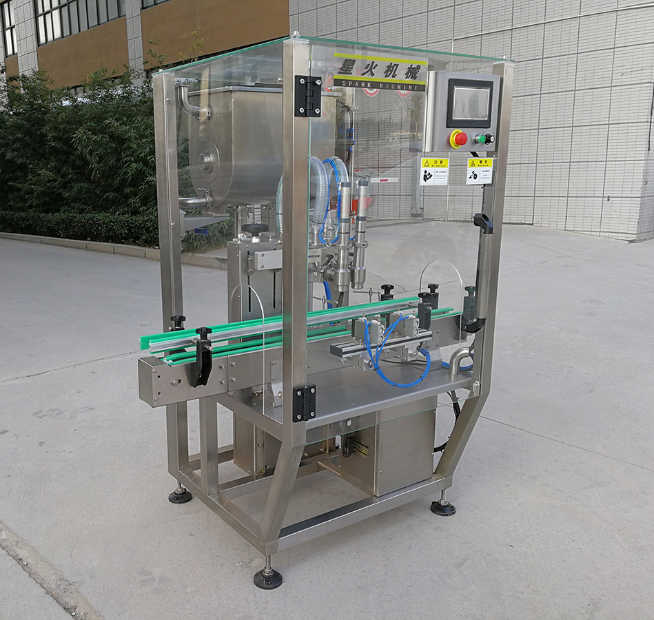該機適合灌裝顆粒類醬料,是全自動辣椒醬灌裝機和豆豉醬灌裝機通用設(shè)備,目前在國內(nèi)屬于比較先進的灌裝機產(chǎn)品,他的產(chǎn)生解決了以前辣椒醬廠家需要大量人力才能完成灌裝的難題,并且提高了產(chǎn)品的灌裝精度。該機和物料接觸部位全部采用316L不銹鋼制成,動力使用臺灣亞德客氣缸推動,整機干凈大方、動力強勁,使很多客戶順利解決了醬料生產(chǎn)企業(yè)QS認證。
