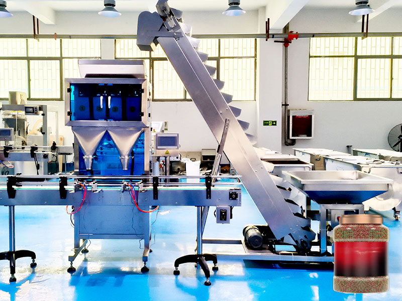 在正式開機(jī)前,應(yīng)當(dāng)仔細(xì)檢查各部件之間的連接的穩(wěn)定性,然后觀察線路、氣源、電源是否正常,接通電源后,工作人員需要按照灌裝容器的容量規(guī)格,將灌裝重量、灌裝速度、輸送帶速度以及上料速度等信息設(shè)置在顯示屏幕當(dāng)中,并且將所要灌裝的顆粒物料提前備至在料斗內(nèi),準(zhǔn)備好足夠的灌裝容器。一切準(zhǔn)備就緒后,按下啟動(dòng)按鈕,全自動(dòng)顆粒灌裝機(jī)設(shè)備自動(dòng)開始運(yùn)行,操作人員可在一旁密切關(guān)注設(shè)備的運(yùn)行狀態(tài),機(jī)器能夠按照設(shè)定的規(guī)格參數(shù),自動(dòng)完成全部的灌裝工序。當(dāng)半成品灌裝結(jié)束后,全自動(dòng)顆粒灌裝機(jī)設(shè)備將會(huì)隨著輸送帶送至旋蓋、貼標(biāo)、裝箱、碼垛等工序。