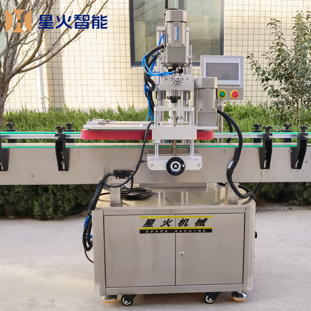 全自動夾蓋旋蓋機(jī)的工作原理是經(jīng)過PLC控制系統(tǒng)的數(shù)據(jù)優(yōu)化后,先通過自動送料系統(tǒng)將所需的蓋子送達(dá)到指定位置,然后再由夾蓋裝置對準(zhǔn)并開始進(jìn)入旋蓋工序,全自動夾蓋旋蓋機(jī)旋蓋頭會按照工作人員預(yù)設(shè)的扭矩數(shù)值旋轉(zhuǎn)蓋子,直到達(dá)到所需的密封程度。整個工作過程可根據(jù)實(shí)際情況進(jìn)行調(diào)整。